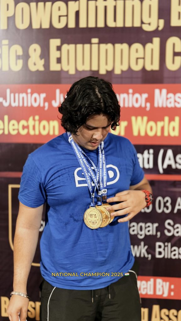 बिलासपूर (छत्तीसगड) येथे 31 जुलै ते 3 ऑगस्ट 2025 दरम्यान वर्ल्ड पावरलिफ्टिंग फेडरेशन संलग्न युनायटेड पावरलिफ्टिंग असोसिएशन व बिलासपूर जिल्हा पॉवरलिफ्टिंग असोसिएशन, छत्तीसगड यांच्या वतीने आयोजित द मेन/वुमन SUB-JR/JR/SR/MASTER I/II/III नॅशनल क्लासिक/इक्विप्ड पॉवरलिफ्टिंग चॅम्पियनशिप स्पर्धेत महाराष्ट्राचे प्रतिनिधित्व करणाऱ्या भाग्य धवन याने चमकदार कामगिरी करत तिन्ही प्रकारांमध्ये प्रथम क्रमांक पटकावला आहे.